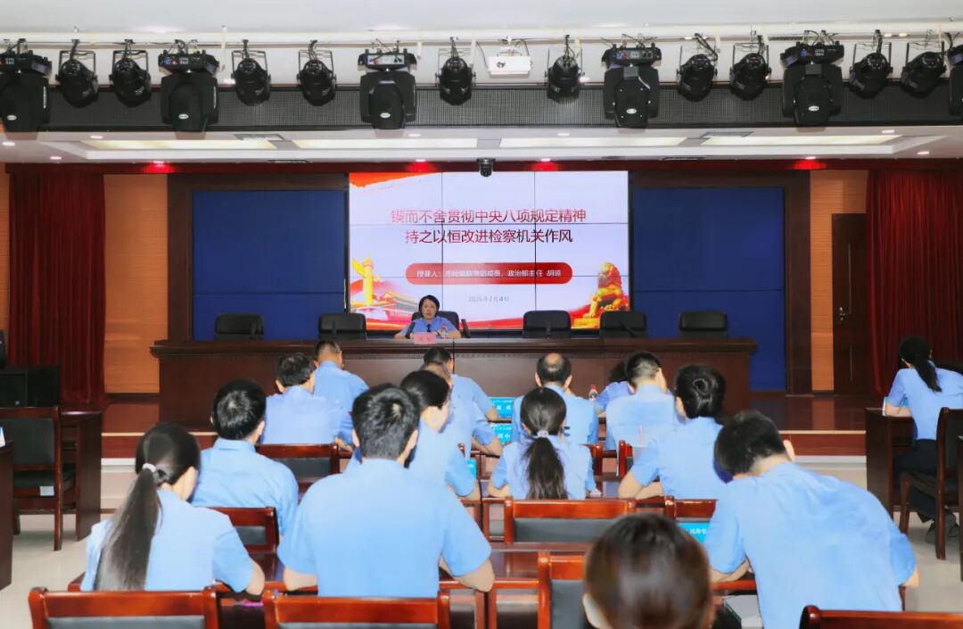 为推动深入贯彻中央八项规定精神学习教育走深走实,加强检察机关作风建设,切实增强检察干警纪律意识,7月4日,吉安市人民检察院党组成员、政治部主任胡琼到挂点的永丰县人民检察院以《锲而不舍贯彻落实中央八项规定精神 持之以恒改进检察机关作风》为题讲授专题党课,该院全体检察人员参加。