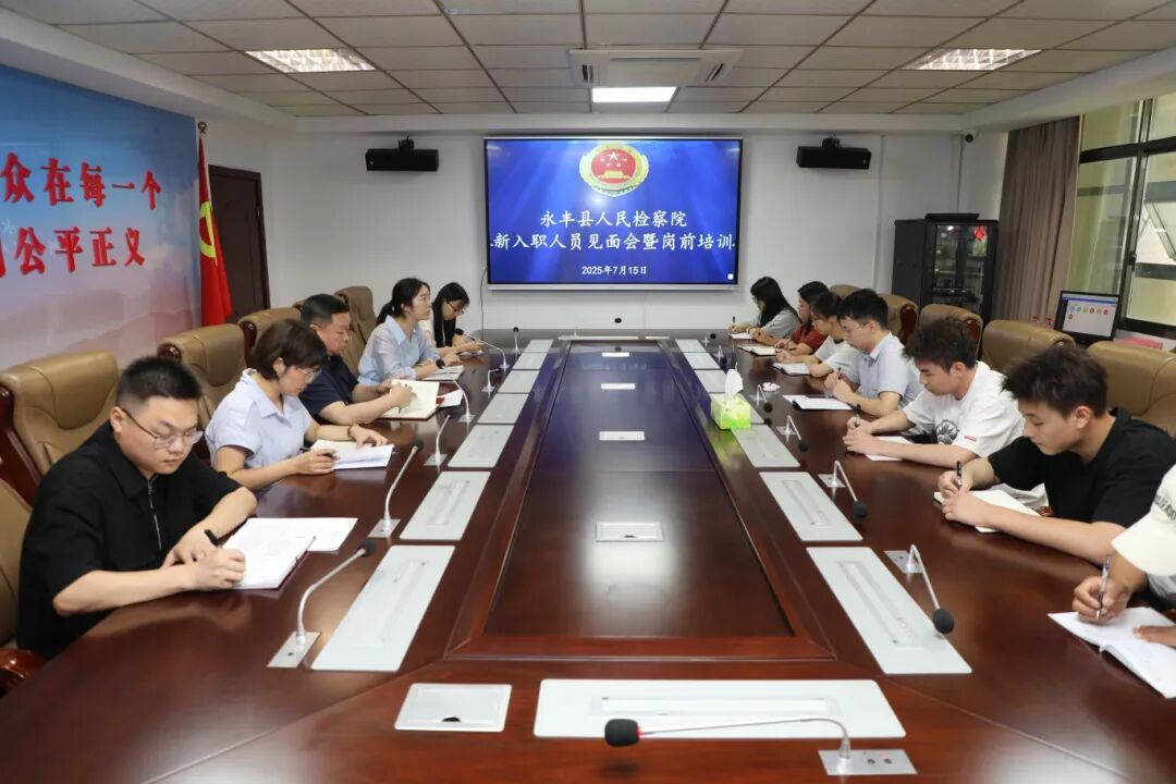 为切实增强新入职人员廉洁自律意识,提升履职能力,帮助他们扣好廉洁从检“第一粒扣子”,7月15日,永丰县人民检察院召开新入职人员见面会暨岗前培训会。会议由党组成员、副检察长游丽主持,2025年新入职公务员和近年来新入职书记员参加。党组书记、检察长赵斌出席会议并讲话。