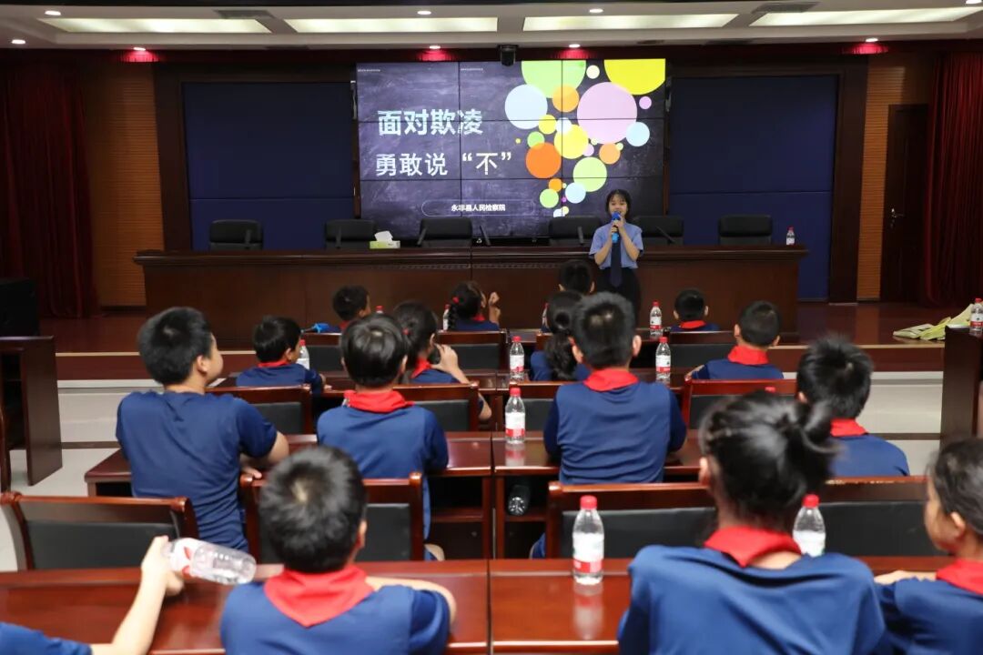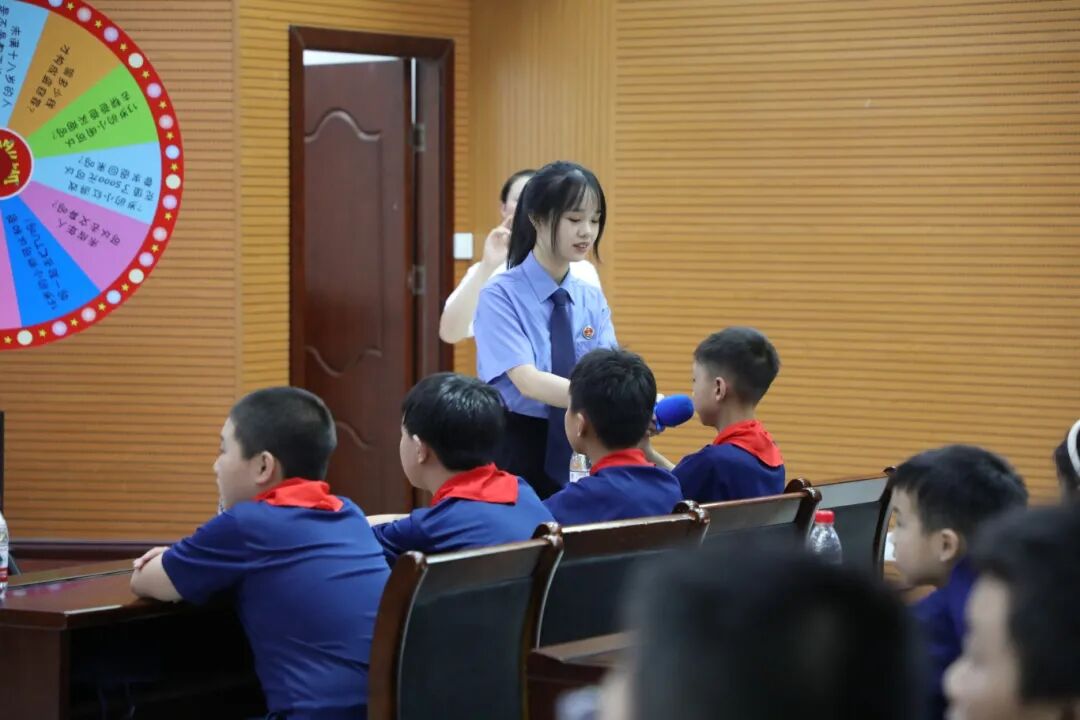 参观结束后,检察干警以“面对欺凌,勇敢说不”为主题,向孩子们普及了《中华人民共和国未成年人保护法》中关于校园安全、网络保护等内容,播放“防校园欺凌”视频短片,增强了大家自我保护意识和能力。现场还设置了问答环节,大家都积极踊跃发言,现场活动热烈。