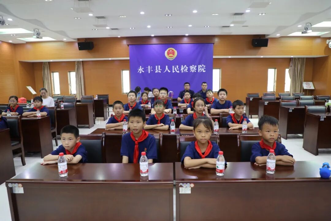 为进一步提升未成年人的法治意识和自我保护的能力,7月18日上午,永丰县人民检察院和永丰县消防大队携手开展暑期法治研学活动。来自永丰县消防大队暑假实践营的25名孩子走进检察院,开展了一场特殊的“安全大讲堂”,在沉浸式体验中学习法律知识。