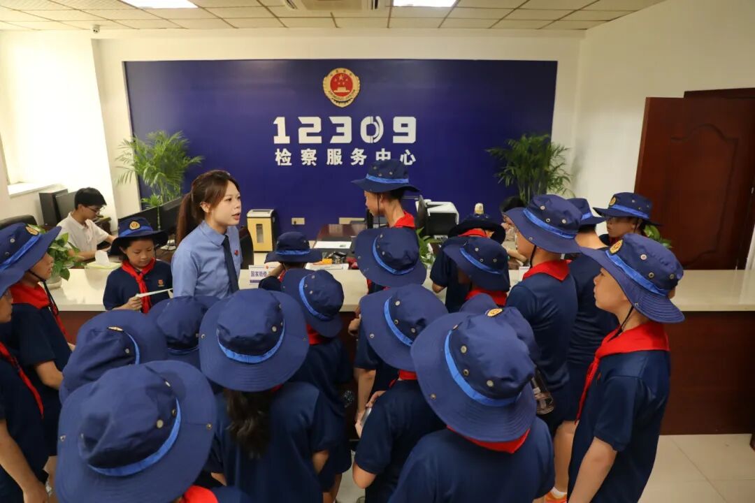 活动开始,法治宣讲员带领孩子们参观了12309检察服务中心和案件受理中心,详细地介绍了检察职能和办案流程,以及未成年人相关的法律知识等,让学生们更加深入地了解检察工作。随后来到“永欢”青年护未工作室参观,通过以案释法等让大家了解了未成年人检察工作职能。