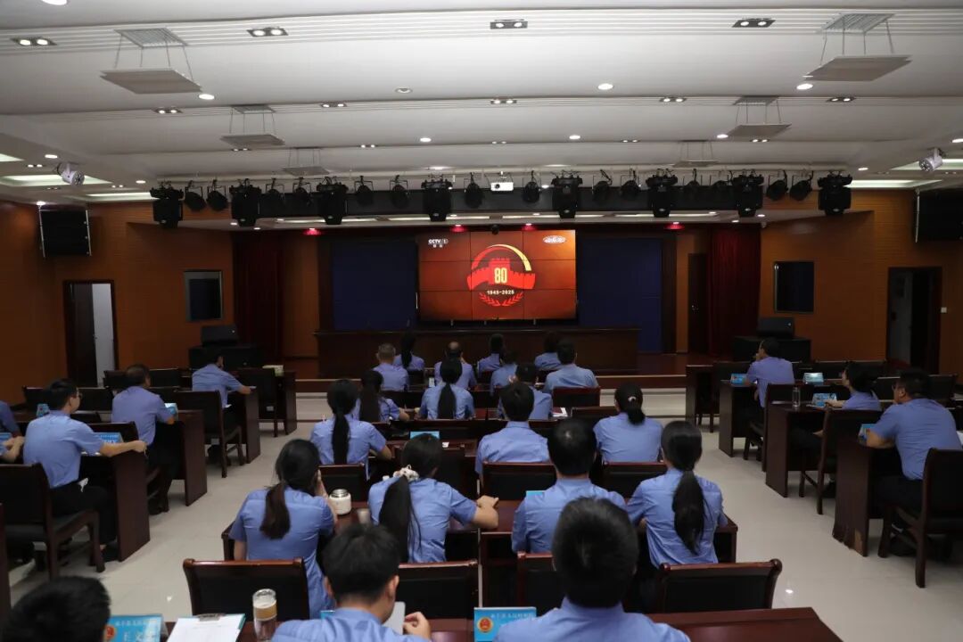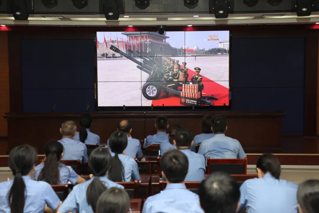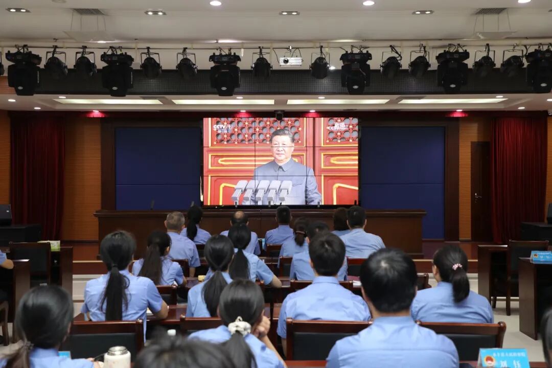 会场上,干警们认真聆听习近平总书记重要讲话,全神贯注观看阅兵盛况。大家被整齐划一的徒步方队、威武先进的装备方队以及翱翔天际的空中梯队所震撼。浓厚的民族自豪感与爱国情怀在每个人心中激荡。