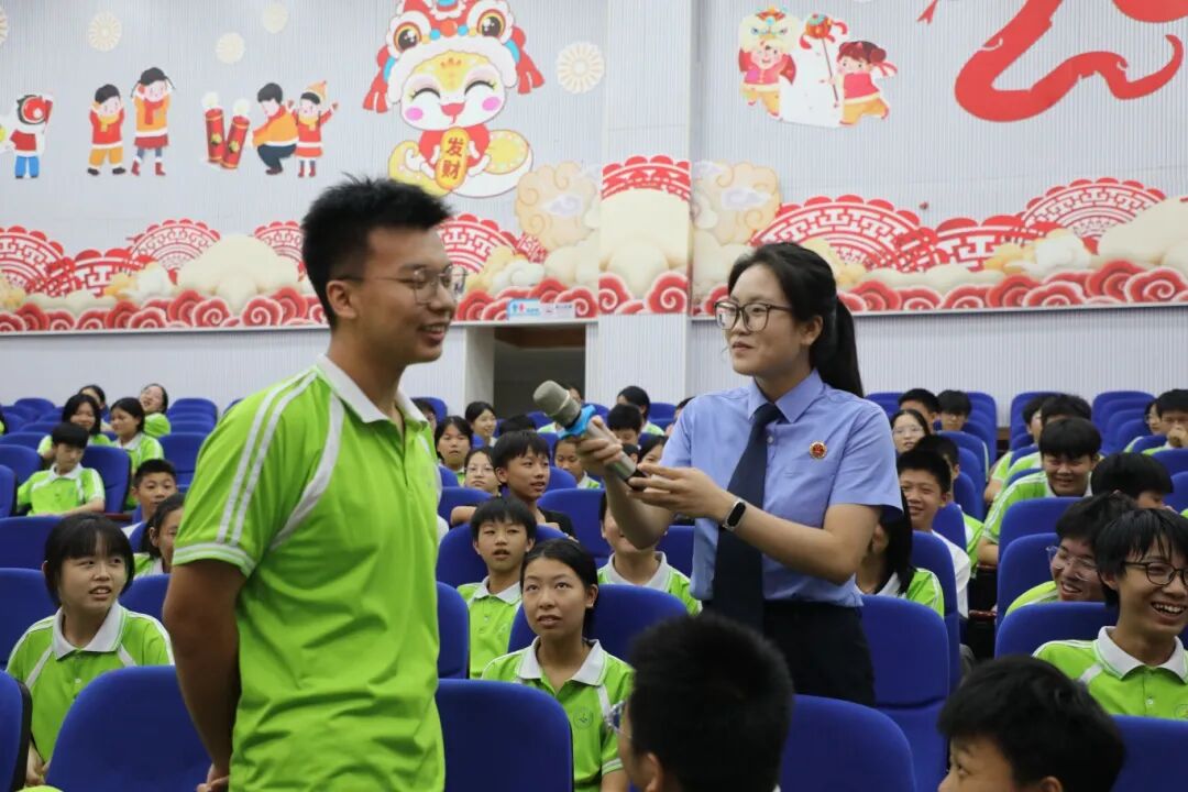 法治宣讲员紧密结合未成年人身心特点和实际生活,梳理了《中华人民共和国未成年人保护法》《中华人民共和国预防未成年人犯罪法》中与未成年人学习、生活息息相关的法律条款,围绕防校园欺凌、防性侵及预防犯罪等主题,结合近年来我院办理的涉未成年人违法犯罪案例,讲解了涉未成年人案件中多发的犯罪类型及其入罪标准、法律后果,以“身边案”警示“身边人”,引导同学们树立正确的价值观和人生观,始终做到心有法度,行有尺度。现场气氛热烈,同学们积极互动、踊跃发言。