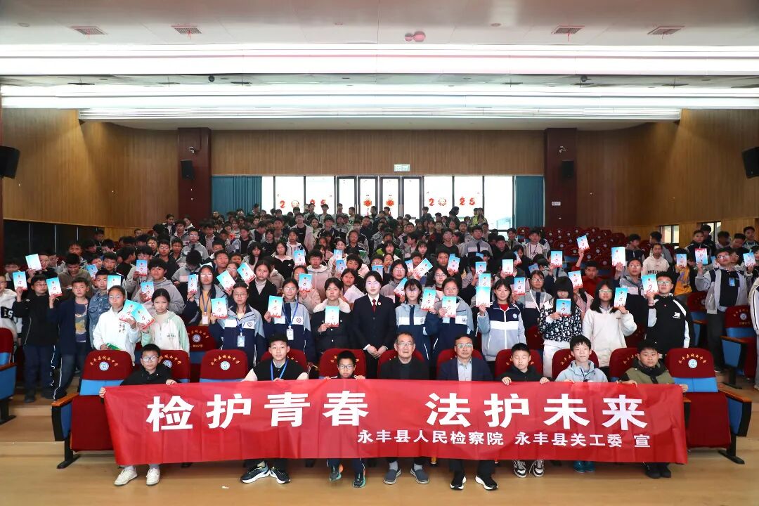 春意盎然,法治播种。为在春日里筑牢青少年法治防线,护航未成年人健康茁壮成长,近日,永丰县人民检察院联合县关工委关爱报告团,走进城西中学,为200名余同学开展“检护青春 法护未来”主题法治宣讲活动,让法治春风吹遍校园每一个角落。