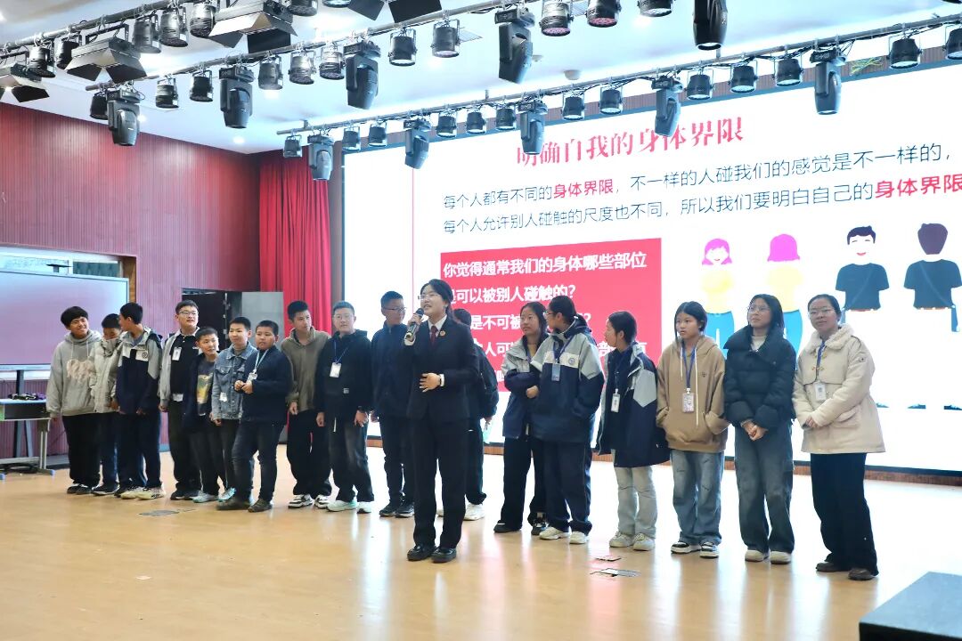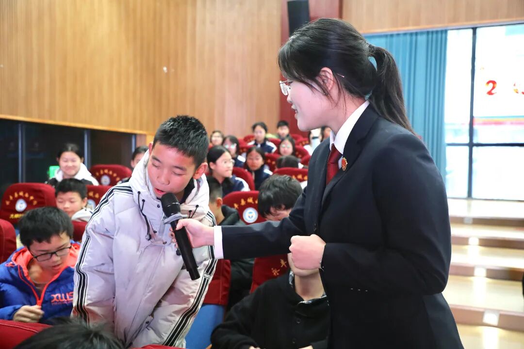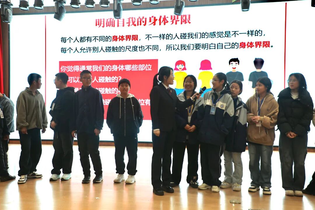 法治宣讲员以游戏互动开场,结合校园常见场景的真实案例,以案释法、以理服人,清晰展现了不良行为至违法犯罪的“流程图”,让同学们深刻认识到“法在身边,勿越红线”。